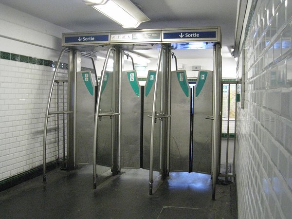 Lối vào trạm xe điện ngầm trên mặt tiền đường xe chạy mang tên đường dây có số ghi bên trong hầm thường khi được trang trí theo kiểu Art Nouveau Tân Nghệ Thuật do nghệ sĩ Guimard thực hiện (Edicule Guimard) trông rất thanh nhã hoa lá cành. Ông Hector Guimard thực hiện hai kiểu lối vào Đóng và Mở bên hông, đóng khi hông có vật liệu che kín và mở khi nó trống.