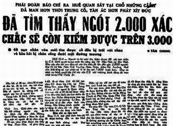 5- 50 năm đã trôi qua. Nhiều chứng nhân vẫn còn sống (trong đó có kẻ viết bài này), nhiều chứng tích vẫn tồn tại (chẳng hạn ngôi mộ tập thể chôn cất xương cốt của hơn 400 nạn nhân khe Đá Mài tại núi Ba Tầng [núi Bân], phía Nam thành phố Huế, nhưng trong tình trạng bị bỏ hoang phế với trụ bia và hai bàn thờ bị VC phá hủy ngay sau tháng 4-1975), vô số tài liệu đã được công bố rộng rãi trên mạng về cuộc thảm sát cách đây nửa thế kỷ. Thế nhưng đảng và nhà cầm quyền VC vẫn quyết tâm không thừa nhận sự thật, lãnh nhận trách nhiệm, công nhận tội ác tầy trời mà chính họ đã gây ra cho Dân tộc và Đồng bào trong những ngày xuân năm 1968, vẫn không giải oan cho các nạn nhân vô tội bị giết bằng cách chính thức tạ tội và để tự do cho bất cứ cá nhân hay tập thể nào tưởng nhớ các nạn nhân này, vẫn tiếp tục trình bày biến cố Mậu Thân như một chiến thắng lừng lẫy.