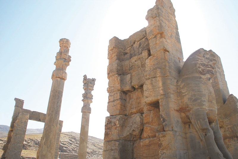 Cách Shiraz hơn 70km về phía đông bắc là phế tích nghìn năm tuổi ở kinh đô nghi lễ cổ Persepolis. Sách sử Iran chép lại những chương huy hoàng về thời đại Achaemenes trên mảnh đất này từ thế kỷ VI trước Công nguyên. Dấu thời gian vẫn còn khắc trên những cột đá cao sừng sững trước Cổng chào vạn quốc (Gate of All Nations). Khi đế quốc Ba Tư suy vong và bị chinh phạt bởi Alexandros Đại đế vua xứ Macedonia, người Hy Lạp đã đốt trụi hoàn toàn Persepolis.