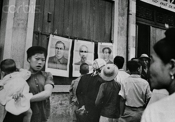 Ảnh cờ VNCH tại Tràng Tiền năm 1954, trước khi Việt Cộng xâm lăng thành phố. "Giải phóng Hà Nội" được diễn ra vào ngày 10/10/1954.