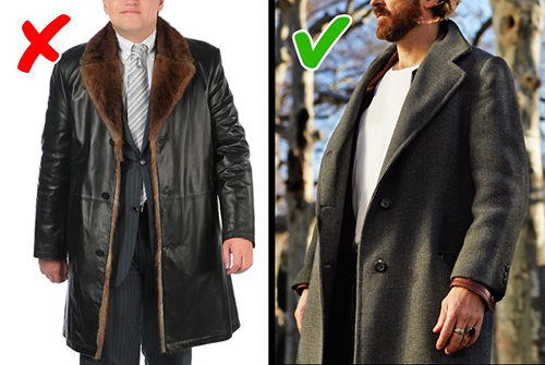 Dù chiếc áo khoác da lót lông có đắt tiền thế nào, bạn cũng đừng mặc chúng ra đường nữa. Phong cách này khiến bạn trông già thêm vài tuổi và có vẻ tăng thêm nhiều cân. Quý ông lịch lãm chỉ cần một chiếc áo khoác dạ mùa đông cổ điển là đủ.