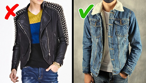 Các loại đồ đính kèm quần áo như đinh, đá, khóa là những thứ không còn được ưa chuộng trong cả thời trang của nam và nữ. Điều này đặc biệt đúng với những chiếc áo da. Trước đây, những kiểu áo khác lạ này phổ biến tới mức gây cảm giác nhàm chán. Nếu thích phong cách "bụi bặm", bạn chọn một chiếc áo bò hoặc áo da màu sắc và thiết kế truyền thống.