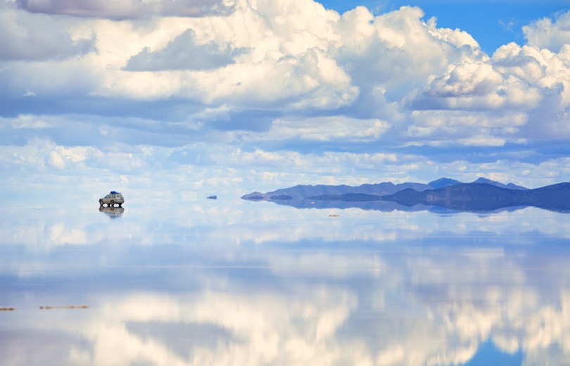 Salar de Uyani là mỏ muối lớn nhất trên thế giới, nằm ở Bolivia. Vào mùa khô, cả mỏ muối được bao phủ một màu mờ trắng sáng. Nhưng sang mùa mưa, cảnh quan của Salar de Uyuni sẽ trở nên siêu thực bởi một lớp nước mỏng trên bề mặt cánh đồng, tạo ra hiệu ứng phản chiếu hoàn hảo, khiến cánh đồng muối như chiếc gương lớn nhất thế giới.