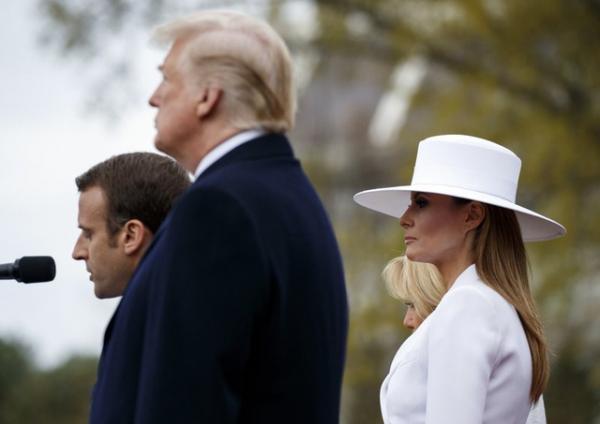 Bà Melania cũng thu hút sự chú ý với bộ trang phục khi đưa phu nhân tổng thống Pháp, bà Brigitte, đến Bảo tàng Nghệ thuật Quốc gia để xem triển lãm của họa sĩ người Pháp Paul Cezanne. (Ảnh: AP)