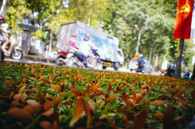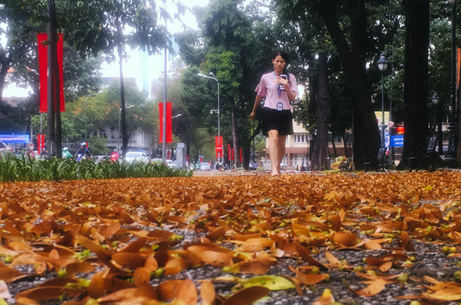 “Giờ nghỉ trưa chúng em đi ăn cơm rồi ra công viên ngồi nhâm nhi ly cà phê ngắm những cánh hoa dầu rơi, xoay tít từ trên cao xuống trông rất đẹp”, Nguyễn Nam nhân viên văn phòng ở quận 1 chia sẻ.