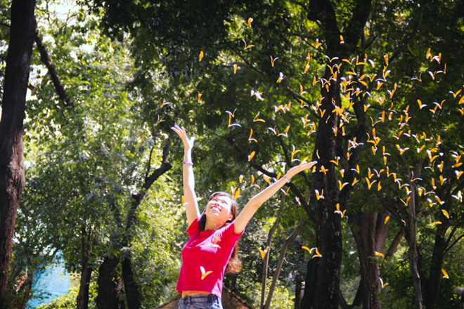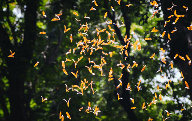 Nhiều người thích thú với hoa dầu rơi. Một số bạn trẻ gom những cánh hoa dầu rơi trên phố lại tung lên trời để ghi lại những khoảnh khắc đẹp