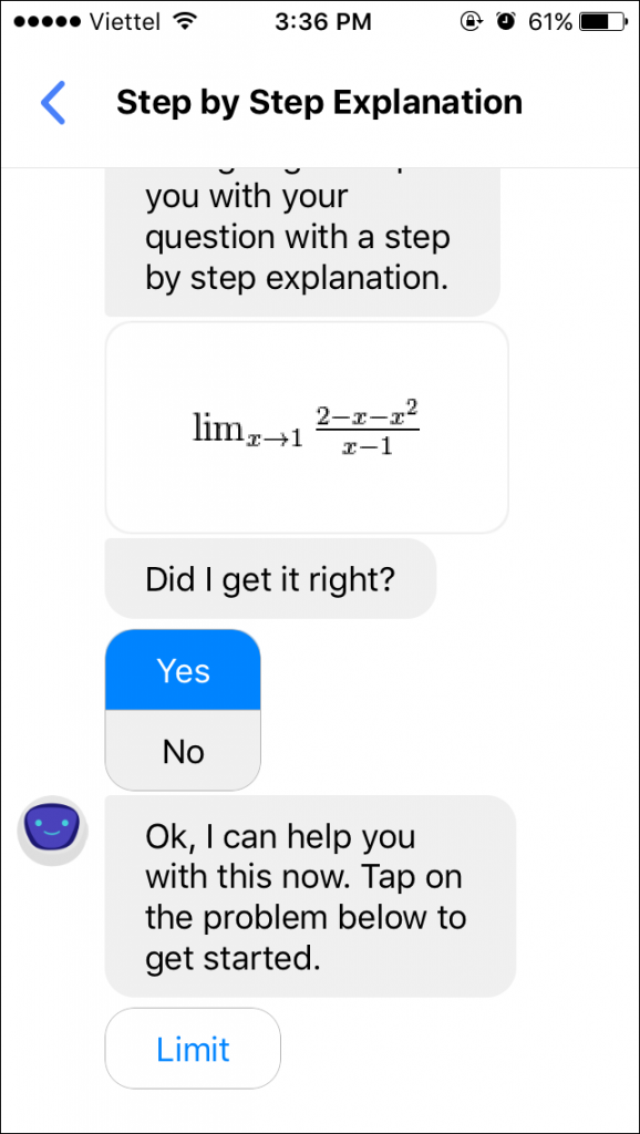 AI của ứng dụng hỏi lại người dùng xem liệu nó nhận diện bài toán đúng hay chưa?