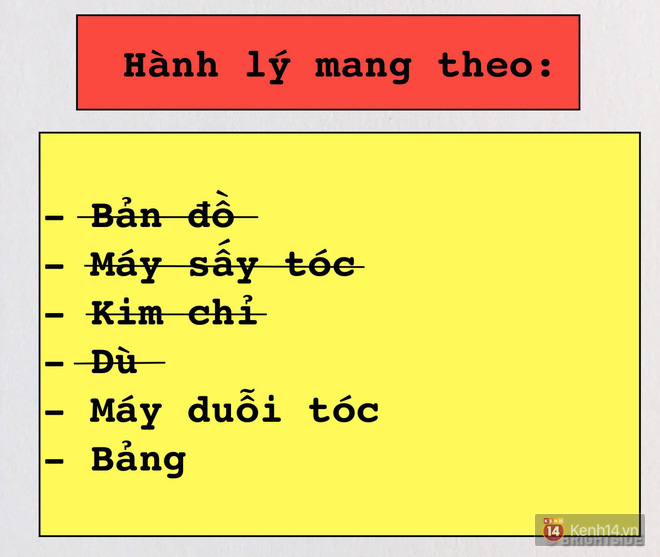 Những vật dụng gạch chân vốn không cần phải mang đi vì đa số khách sạn đều có cho bạn cả