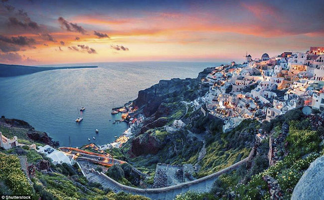 Santorini là một quần đảo bao gồm các hòn đảo chính như Therasia, Aspronisi, và các đảo Kameni ở trung tâm. Khu vực này nổi tiếng là nơi các cặp đôi chọn làm nơi hưởng tuần trăng mật, hầu như các khách sạn ở đây đều có tầm nhìn hướng ra cảnh quan núi lửa trước mặt