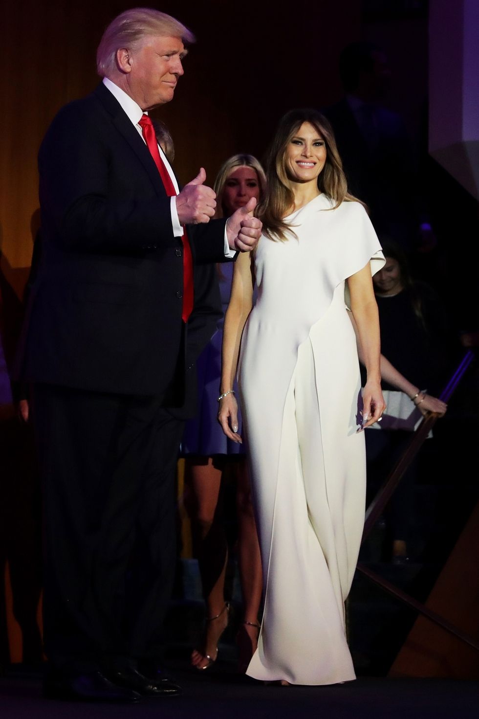 Theo stylist Donny Galella: “Màu trắng biểu trưng cho sự tinh khiết, trong sáng, hoàn hảo và sang trọng. Có lẽ vì vậy mà Melania Trump thường chọn trang phục trắng để xuất hiện trước đám đông”.