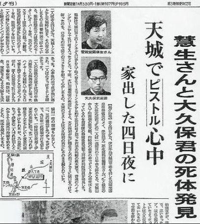 Ngày 4/12/1957, Tuệ Sanh ra khỏi nhà nhưng không quay trở về. Đến ngày 10/12/1957, thi thể của Tuệ Sanh được tìm thấy bên cạnh thi thể của Okubo trên núi Amagi ở bán đảo Izu. Tại hiện trường, người ta nhìn thấy trên đầu Tuệ Sanh có một vết đạn, trên ngón áp út của tay trái có đeo một chiếc nhẫn. Không những thế, cảnh sát còn tìm được móng tay và tóc của hai người được gói trong bọc giấy trắng, chôn cất gần đó. Nhiều người nghi ngờ đây là một vụ tự tử và cả hai đã tự bắn mình bằng khẩu súng của Obuko.