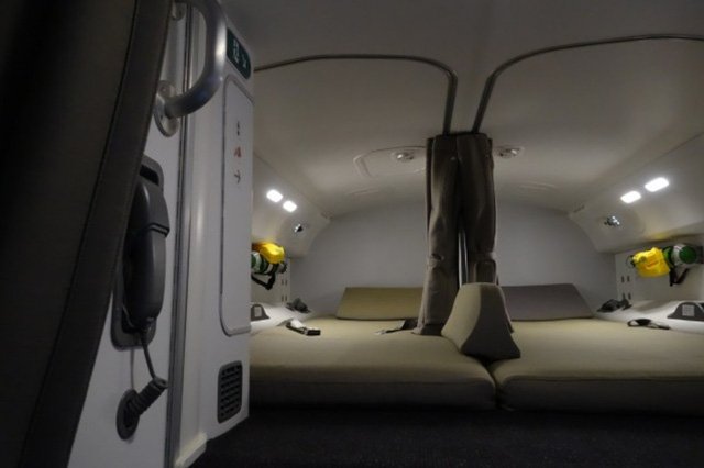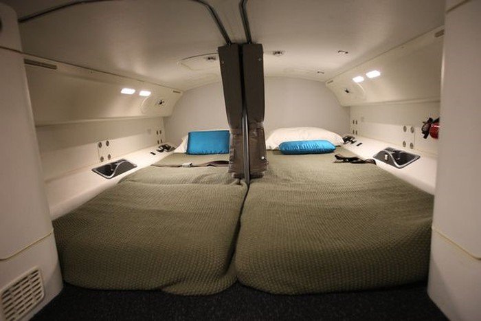Giường của phi công khá rộng rãi và được bố trí hệ thống cách âm, nhằm đảm bảo sự yên tĩnh. Tùy theo loại máy bay mà số lượng giường có thể khác nhau