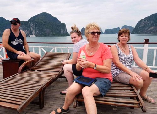 Nhóm du khách Australia từng bức xúc khi mua tour du thuyền Hạ Long nhưng chất lượng dịch vụ thực tế không như công ty quảng cáo, tàu đón khách ở Cát Bà, Hải Phòng. Ảnh: Lynne Ryan.