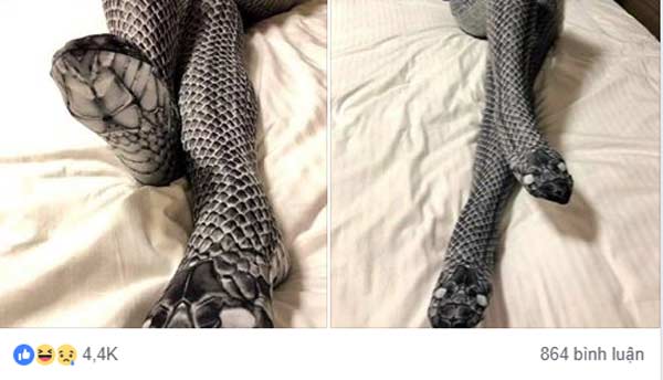 Ngay dưới bài đăng tải và bức ảnh, rất nhiều người cũng bày tỏ thái độ ngạc nhiên xen lẫn sợ hãi trước đôi tất mô phỏng hình rắn khá thật trên. “Thật đáng sợ, thời trang gì mà kỳ quái”, “Đây đúng là thảm họa thời trang thế kỷ 21”, "Nhìn kinh quá, mình sợ nhất là rắn, đang say vào phòng mà nhìn loáng thoáng cảnh này trên giường chắc tè cả ra quần mất", "Giật cả mình, ngay cả khi lướt Facebook mình vẫn nghĩ là rắn thật sự, sợ quá đấy các bạn"