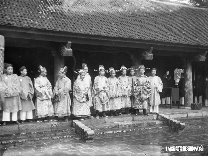 Các viên quan đứng trước Đại Bái Đường. Ảnh tư liệu.