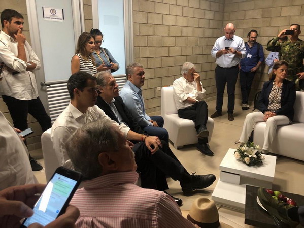 Hiện ông Guaido đang có mặt ở Colombia. Những khoảnh khắc trước, Tổng thống Juan Guaido đang gặp Bộ trưởng Quốc phòng Colombia xác định chi tiết về việc thông qua viện trợ nhân đạo cho Venezuela từ Cúcuta ở Colombia 23Feb2019.
