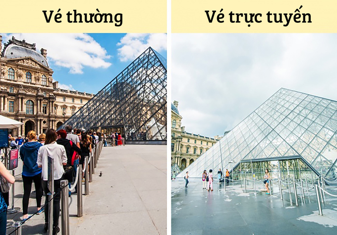 Dòng người xếp hàng chờ mua vé tại những điểm du lịch nổi tiếng đôi khi có thể rất đông như bảo tàng Louvre, tháp Eiffel hay tượng Nữ thần Tự Do. Tuy nhiên, nhiều nơi có lối vào riêng dành cho những du khách đã mua vé trực tuyến trước đó. Điều này sẽ giúp bạn tiết kiệm nhiều thời gian. Ảnh: Liptoncnx & Jovannig.