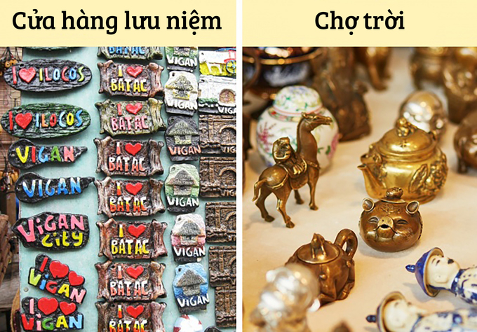 Thông thường sẽ có hai thái cực: người mua đồ lưu niệm xấu xí, không đáng tiền và người hối tiếc vì không mua gì cả. Lời khuyên mà những người có kinh nghiệm đưa ra là bạn nên ghé thăm một khu chợ trời. Đây là địa điểm bạn có thể tìm thấy những thứ độc đáo với mức giá rất thấp. Hầu hết món đồ bán tại đó được sản xuất tại địa phương thay vì hàng phổ cập thường thấy tại các quầy bán đồ lưu niệm.