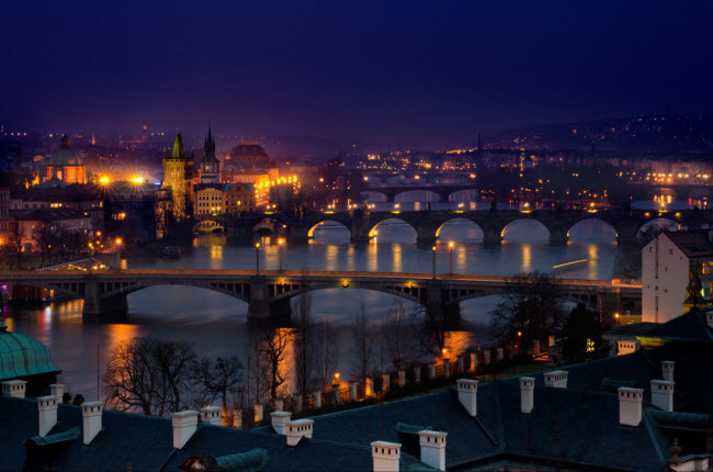 Prague, Cộng hòa Czech: Vào buổi tối, du khách có thể đi thuyền hay đi bộ dọc sông Vltava, thưởng thức bia Czech, tham gia các tour săn ma dưới đường hầm.