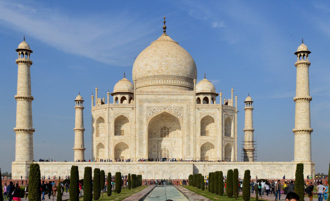 Đền Taj Mahal, Ấn Độ: Công trình này thực chất là một lăng mộ được xây dựng bởi hoàng đế Shah Jahan dành cho người vợ mất khi sinh đứa con thứ 14 của ông.