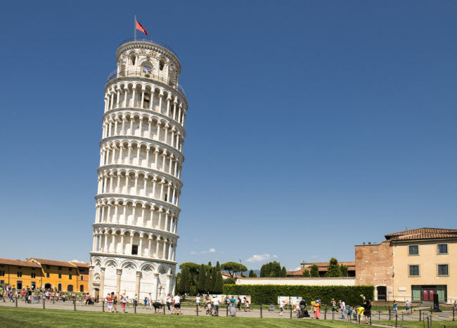 Tháp nghiêng Pisa, Italia: Công trình bị nghiêng ngay từ khi được xây dựng vào năm 1173, bời vì nó nằm trên nền cát và đất sét.