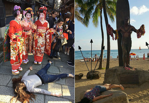 Cô gái giả chết tại các điểm du lịch nổi tiếng thế giới vì lý do gì? Cô muốn thể hiện ý tưởng cuộc sống đáng quý biết nhường nào. Trong khi khách du lịch đang chụp ảnh, cô lại tạo dáng giả chết đúng kiểu "phá games".