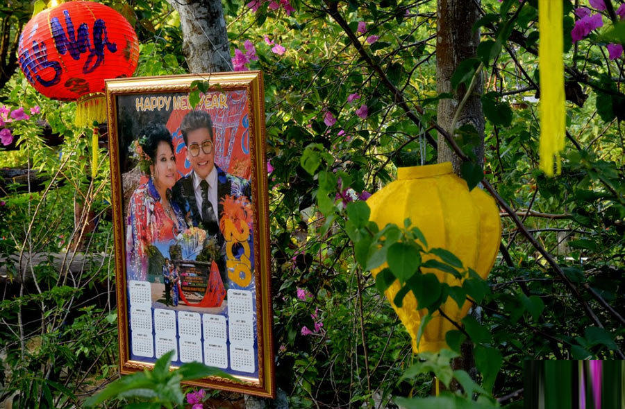 Nếu dạo khu vườn này, thi thoảng ta sẽ thấy những khung hình "cô dâu chú rể" rất bắt mắt được treo khá bắt mắt ở khắp cả khu vườn.