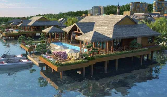 Nhưng sau đó, tập đoàn Changfeng Thượng Hải đã nhìn thấy tiềm năng của nơi này và quyết định xây dựng một khu phức hợp du lịch, vì vậy có một khách sạn lớn nhất thế giới - Taihu Dragon Dream Park.