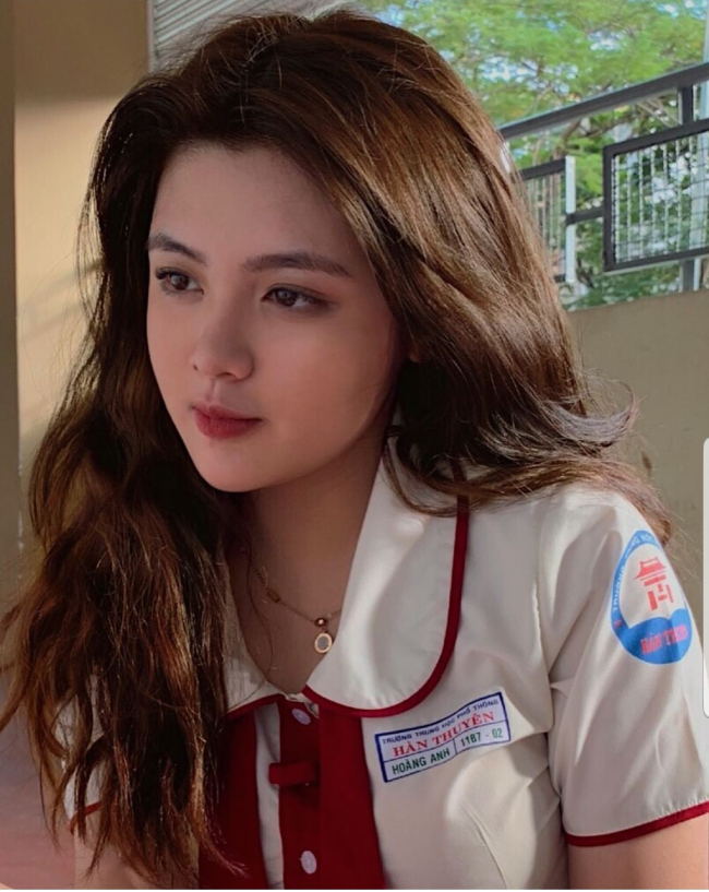 Nguyễn Ngọc Hoàng Anh, nữ sinh lớp 11 trường THPT Hàn Thuyên, nổi tiếng chỉ sau một đêm nhờ bức ảnh mặc đồng phục gây sốt mạng xã hội.