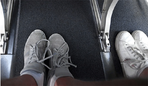 Vài giây sau, lưng Paul bị đạp bởi những cú đá dữ dội. Đoán người ngồi phía sau là trẻ con hiếu động, anh liền tháo mặt nạ và quay xuống nhắc nhở nhẹ nhàng. Tuy nhiên, đối diện với nam hành khách là một phụ nữ đeo kính, hậm hực nói rằng Paul đã ngả ghế quá thấp, ảnh hưởng đến không gian của cô. Anh ngạc nhiên vì những người xung quanh cũng ngả ghế tương tự mình, trong khi người phụ nữ ngồi lọt thỏm trong ghế phía sau.