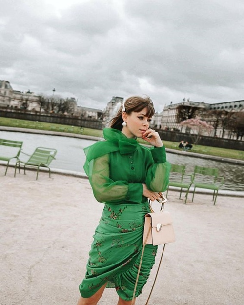Những set đồ tạo thành từ các item cùng tông màu luôn tạo ra cảm giác nền nã, sang trọng hơn hẳn. Sơ mi xuyên thấu cũng không ngoại lệ. Mix những chiếc sơ mi thời thượng với quần hoặc chân váy tiệp tông, bạn sẽ cho ra đời những bộ cánh vô cùng sành điệu, xóa tan cảm giác sexy thái quá của kiểu áo này. Với cách kết hợp kiểu matchy-matchy, bạn nên ưu tiên nội y màu da hoặc cùng màu với áo để không phá vỡ tổng thể.