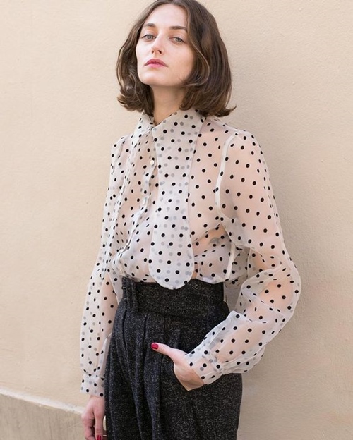 Sơ mi xuyên thấu mix cùng những thiết kế quần kín đáo, dày dặn sẽ tăng thêm nét duyên cho phái đẹp