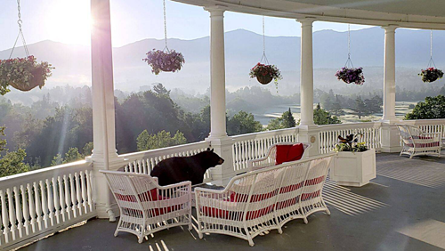 Sam Geesaman, nhân viên Omni Mount Washington Resort, kết thúc ca đêm vào 29/6 và dự định ngắm bình minh trên dãy núi White (thuộc bang New Hampshire, đông bắc Mỹ). Nhưng lúc đó, Sam ngạc nhiên khi thấy một con gấu đen trèo lên cầu thang và sục sạo thùng rác gần đó để tìm thức ăn.