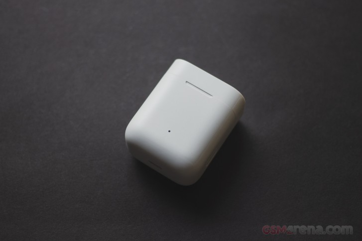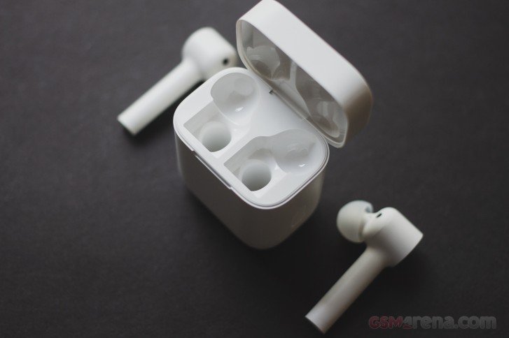 Nắp được gắn vào một bản lề lò xo và đóng kín nhờ từ tính. Khi mở nắp chiếc Mi True sẽ có cảm giác hơi lỏng lẻo và cảm giác trọng lượng không nhẹ như vỏ AirPods. Nó cũng không mở đủ rộng, luôn có nguy cơ gập ngay xuống khi ở vị trí mở. Tuy nhiên, khi đóng lại thì Mi True sẽ ở trạng thái tắt nguồn và không rơi ra ngay cả khi bị lắc rất mạnh. Bên trong vỏ là hai hốc lớn cho từng chiếc tai nghe. Các tiếp điểm để sạc ở đáy các hốc, tương tự như vỏ AirPods.