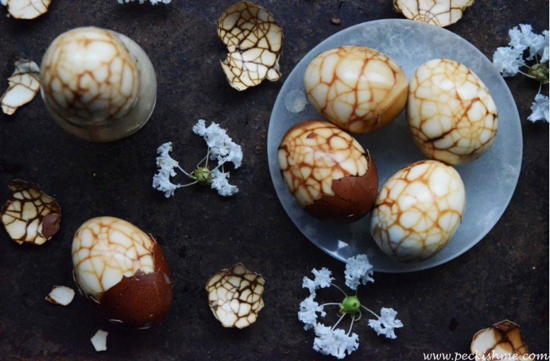 Trứng trà thường được bán như một món ăn vặt phổ biến trên đường phố. Người ta bỏ những quả trứng vào ngâm trong nước trà và gia vị, sau đó trứng sẽ có hình thức giống như viên đá cẩm thạch đẹp bị nứt.