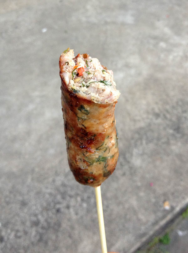 Thông thường món xúc xích ít được lựa chọn cho các món nướng ở Đông Nam Á. Nhưng có một ngoại lệ đáng chú ý, đó là món xúc xích Lào. Món ăn có hương vị phong phú với các loại thảo mộc và gia vị truyền thống như: sả, riềng (, lá chanh, ớt, hẹ, rau mùi khiến món ăn đặc biệt thơm ngon.