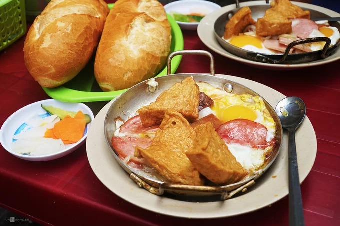 Nơi đây cũng là một trong những địa điểm ăn sáng quen thuộc của người Sài Gòn, mở cửa từ 6h đến 11h hàng ngày. Giá mỗi chảo thập cẩm có giá 50.000 - 60.000 đồng. Ảnh: Di Vỹ.