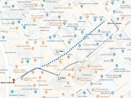 Những du khách tại trung tâm London đang phí tiền mua vé đi tàu điện ngầm để di chuyển giữa hai ga gần nhau nhất, từ Quảng trường Leicester đến quận Covent Garden. Thực tế, hai nhà ga này cách nhau 275 m - khoảng 4 phút đi bộ. Không chỉ vậy, hai nhà ga còn nằm trên cùng một con phố, khiến việc đi bộ càng dễ dàng hơn khi khách không phải xuống ga, đợi tàu và đi bộ lên mặt đất.