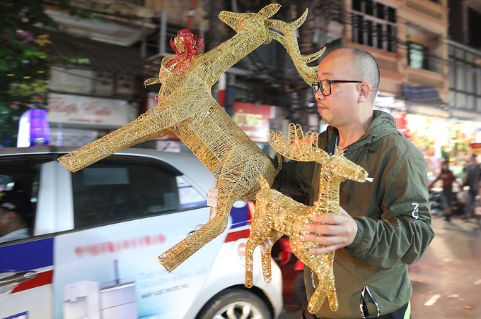 Người đàn ông mua đôi tuần lộc vàng đính kim sa giá gần 2 triệu đồng trong một cửa hàng ở phố Hàng Mã.