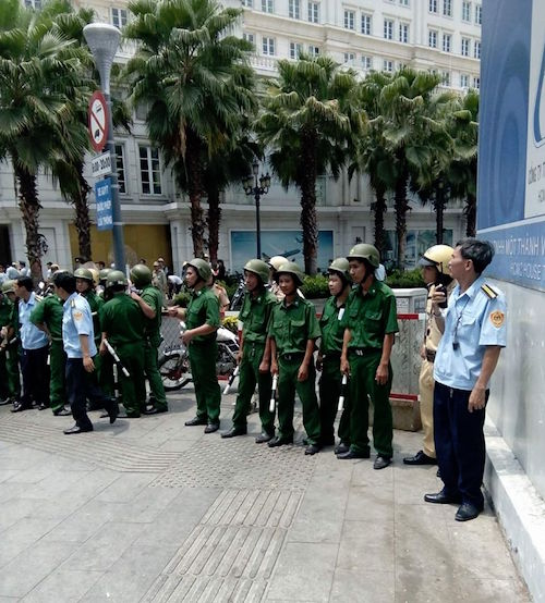 Hình ảnh lực lượng TNXP được điều động để đàn áp người dân xuống đường, phản đối công ty thép Formosa xả độc giết chết biển 4 tỉnh miền trung, năm 2016 ở TPHCM do mình chụp.