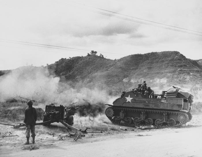 Với hoả lực áp đảo về mọi mắt, từ trên không, dưới mặt đất cho tới trên mặt biển, quân đội Nhật gần như không có chút cơ may nào trong việc cầm chân Mỹ ở đây. Nguồn ảnh: BI.