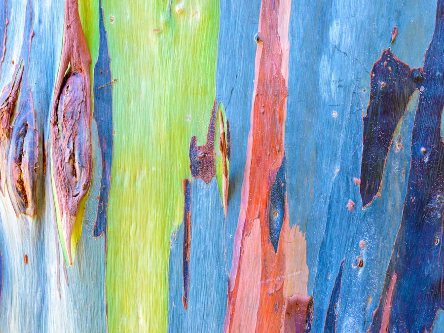 Cây bạch đàn cầu vồng khiến nhiều người vô cùng ngạc nhiên. Sau lớp vỏ xù xì là một dải màu vô cùng bắt mắt. Cây bạch đàn này có thể tìm thấy ở đảo Hawaii và một số nơi ở Mỹ.