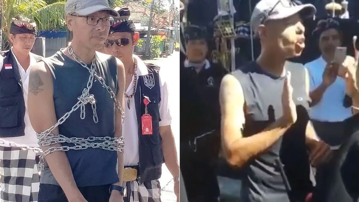 Kháng cự lại cảnh sát, người đàn ông tranh cãi rằng không luật pháp nào ngăn cấm ra đường vào dịp Nyepi ngày 25/3. Anh ta bị trói bằng xích và đưa trở về.