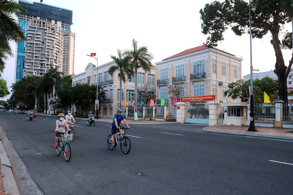 Con đường Bạch Đằng ven sông Hàn dường như rộng hơn vì ít xe. Hầu hết người dân chỉ ra đường khi thực sự cần thiết, trong đó nhiều người chọn đạp xe để rèn luyện sức khỏe.