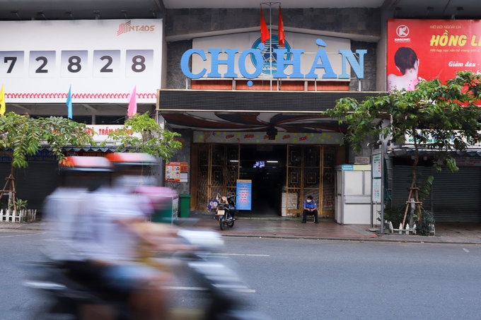 Chờ Hàn trung tâm thành phố trước đây nhộn nhịp nay phải đóng cửa sớm. 17h chiều, người bảo vệ ngồi một mình khi chợ đã không còn bóng người.