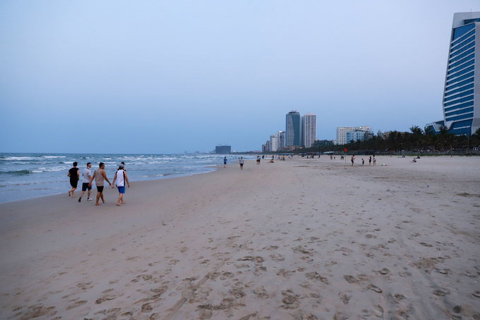 Chiều 29/3, bãi biển Mỹ Khê - được báo chí quốc tế bình chọn là đẹp nhất hành tinh, chỉ có rất ít du khách. Một ngày trước đó, chính quyền thành phố cấm các bãi tắm công cộng hoạt động. Ban quản lý bán đảo Sơn Trà và các bãi biển du lịch, công an, quy tắc đô thị phải nhắc nhở để người dân không tụ tập đông người ở bãi biển.