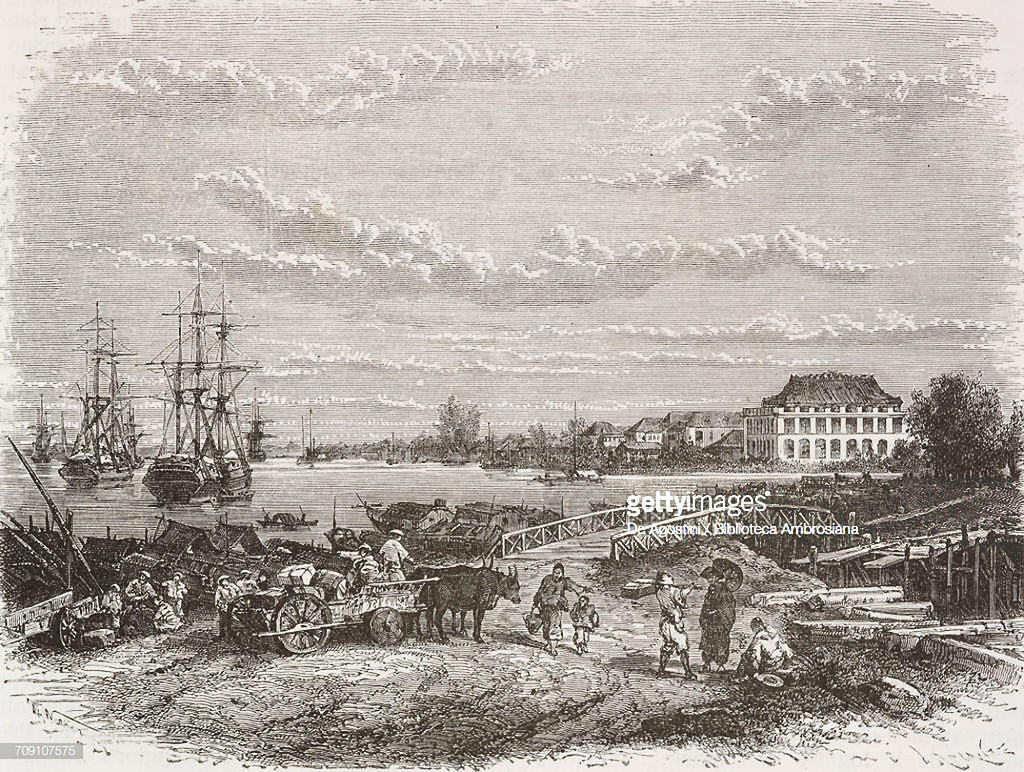 Bến Nhà Rồng trong một bức tranh in năm 1872, vẽ lại từ bức ảnh trước.