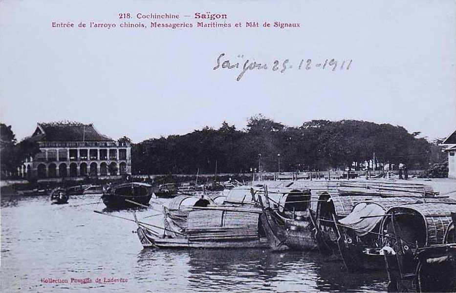 Khu vực cửa rạch Bến Nghé với bến Nhà Rồng ở bên trái, 1911. Từ bến tàu này, người thanh niên Nguyễn Tất Thành đă xuống con tàu Amiral Latouche Tréville để ra đi t́m đường cứu nước vào ngày 5/6/1911.