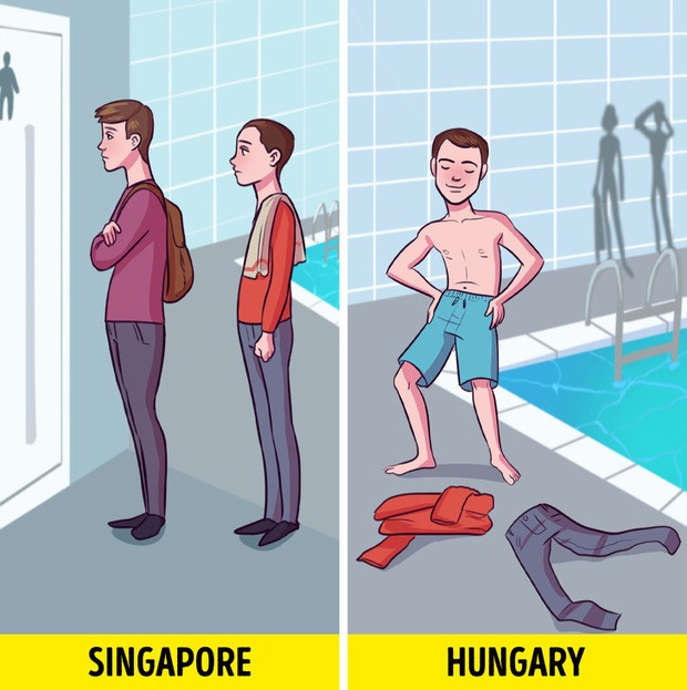 Một số quốc gia khác lại khá thoải mái trong chuyện này. Như Hungary, người dân thậm chí sẵn sàng lột phăng đồ tại bể bơi mà hoàn toàn không có vấn đề gì cả.