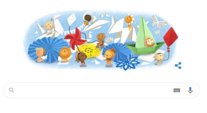 Sáng 1/6, Google thay đổi giao diện doodle kỷ niệm Ngày Quốc tế Thiếu nhi 1/6 - Ngày Trẻ em. Giao diện mô tả trẻ em từ khắp nơi trên thế giới cùng vui chơi với origami, thuyền giấy, hồng hạc và những cánh chong chóng.